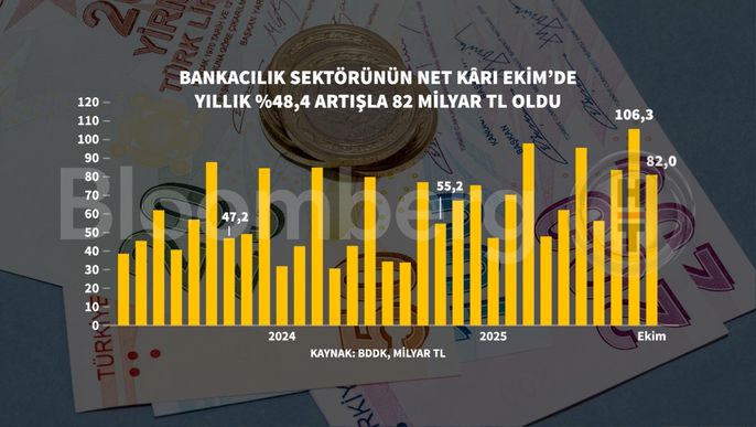 Bankacılık sektörünün net kârı Ekim'de yıllık yüzde 48,4 artışla 82 milyar TL oldu.