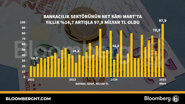 Bloomberg HT Grafik Bankacılık sektörünün net kârı Mart'ta yıllık yüzde 14,7 artışla 97,9 milyar TL oldu