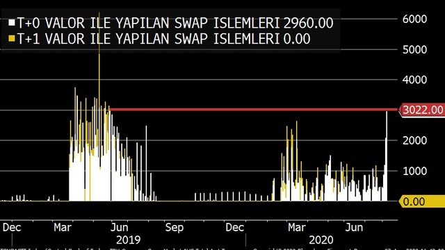 Açık Piyasa İşlemlerinde TL’nin maliyeti yükselince bankalarda oluşan günlük TL likidite ihtiyacının bir kısmını yine TCMB’den karşıladı. TCMB’nin nezdinde açık olan pencereden %0 faiz ile 2,96 milyar dolar depo verip %8,25 ile bunun karşılığı olan TL’yi bir hafta ile borçlandılar. Aynı gün valörlü işlemlerde 31 Mayıs 2019’dan beri en yüksek işlem miktarı gerçekleşmiş oldu.
