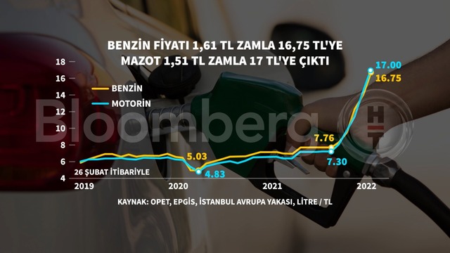 Ukrayna saldırısı sonrası petrol ve kurda yaşanan yükseliş sonrasında akaryakıt ürünlerine zam uygulanmasına karar verildi.