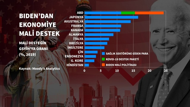 Biden’ın açıkladığı pandemi destek planı Kovid-19 ile mücadeleye 400 milyar dolar, vatandaşlara doğrudan ödenecek çeklere 1 trilyon dolardan fazla ve topluluklar ile şirketlere 440 milyar dolar yardım öngörüyor.