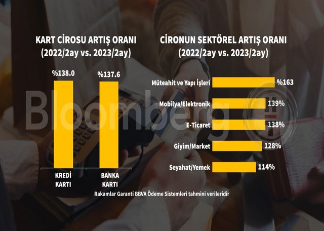 Hane halkını geçen yıl yaptığı her 100 TL’lik alışverişin 42 TL’sinin kredi kartlarından geçtiğini hatırlatan Süzer, “2022 yılı ilk 2 ayı ile bu yılın ilk 2 ayını karşılaştırdığımızda kredi kartı cirosunda yüzde 138, banka kartı cirosunda ise yüzde 137.6’lık bir artış söz konusu. Cironun sektörel dağılımına bakıldığında ise en fazla artış yüzde 163 ile yapı işlerinde. Onu yüzde yüzde 139 ile mobilya ve elektronik, yüzde 138 ile e-ticaret, yüzde 128 ile giyim ve market, yüzde 114 ile seyahat ve yemek izliyor” diye konuştu. 2023 yılı ilk 2 ay itibarıyla e-ticaretin toplam alışveriş içindeki payının yüzde 27.5 seviyesine ulaştığını kaydeden Süzer, alışverişlerinde çoğunlukla taksitli yapıldığını belirtti. Süzer, son 1 yılda taksitli alışverişlerin yüzde 153, peşin alışverişlerin ise yüzde 119 büyüdüğünü sözlerine ekledi.