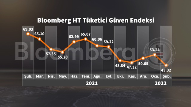 Bloomberg HT Tüketici Güven Endeksi Şubat ayında 45,32 değerini alarak endeks tarihinin en düşük seviyesine geriledi.