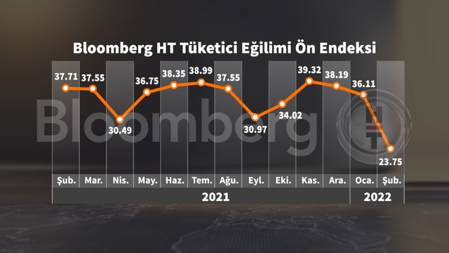 • Bloomberg HT Tüketici Güven Ön Endeksi Şubat'ta bir önceki ayın nihai endeksine göre yüzde 21,12 düşerek 41,99 ile tarihi düşük seviyeye indi. Geleceğe ilişkin beklenti endeksi ve tüketim eğilim endeksi de tarihi düşük seviyelere indi