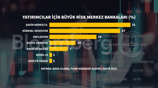 Bankanın bu ay için düzenlediği ankette 872 milyar doları yöneten yatırımcı grubu arasında en büyük korkunun şahin merkez bankaları olduğu belirtilirken ikinci sırada küresel durgunluk endişesi yer aldı. Stagflasyon endişeleri ise 2008’den bu yana en yüksek noktaya ulaştı.