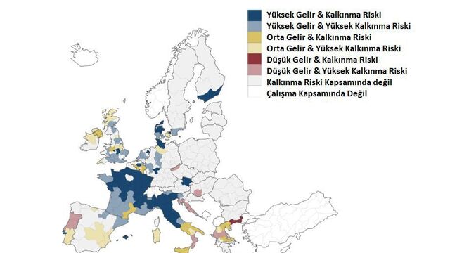 Gelir koşulları, üretkenlik ve istihdam gibi konuların ele alındığı çalışmada makro veriler kullanılarak Avrupa Birliği kalkınma ve gelişim yönünden bölgelere ayrılıyor.