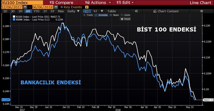 "Öyle bir satış yiyoruz ki 7 işlem günü evvel 106.500 kapanış, bu sabah açılış 95.100. Lira bazında %10.6 satılıyoruz. Bankacılık endeksimiz bu dönemde %14.6 satılıyor. Gelişen ülke rallisi olduğu bilinen bir dönemde, bir fon geliyor piyasamızın Ereğli Demir-Çelik'ten sonra ikinci piyasa değeri en yüksek hissesi olan Garanti Bankası'nı 32 milyon lot net satış yapıyor. Bu çok önemli bir satış. Bir anda Bankacılık Endeksi iki günde iki tane önemli destek kırıyor