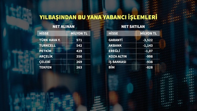 Buna göre, yabancılar 27,7 milyar dolar tutarında alım yaparken, 28,9 milyar dolar tutarında satım gerçekleştirdi. Yabancıların toplam işlem hacmi 56,6 milyar dolar olarak gerçekleşti.