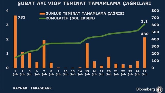 Deprem felaketi sonrasında kapanan borsanın 15 Şubat'ta yeniden işleme başlaması sonrasında yaşanan dalgalanma, vadeli işlem ve opsiyon piyasasında teminat tamamlama çağrılarını da artırdı. 27 Şubat Pazartesi günü VİOP'ta teminat tamamlama çağrısı 430 milyon TL olarak kaydedildi.