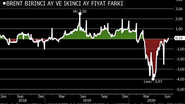 Brent petrol, üç aydan beri ilk kez kısa vadeli kontratların uzun vadeli kontratlardan daha pahalı olduğu "backwardation"a döndü.