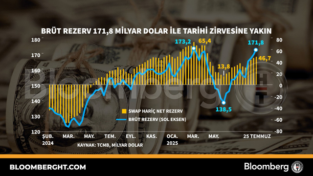 Bloomberg HTGrafikBrüt rezerv 171,8 mi̇lyar dolar i̇le tari̇hi̇ zi̇rvesi̇ne yakın