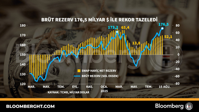 Bloomberg HT Grafik Brüt rezerv 176,5 mi̇lyar dolar i̇le rekor tazeledi̇ Brüt rezerv 176,5 milyar dolar ile rekor tazeledi Giriş: 21 Ağustos 2025, Perşembe 18:33 Güncelleme: 21 Ağustos 2025, Perşembe 18:33 REKLAM advertisement3ndparty