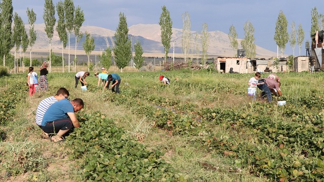 Mersin'den gelen Mustafa Angı ise "Marketten gelinceye kadar değişim oluyor. Kendim topluyorum, kendim yiyorum. Markette buzdolaplarına giriyor, değişiyor. Toplaması zevkli. Buranın çileği daha güzel" şeklinde konuştu.