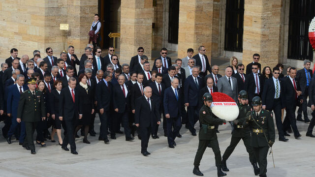 Törende, TBMM Başkanı Cemil Çiçek, Atatürk Anıtı'na kırmızı ve beyaz karanfillerden oluşan çelenk bıraktı; saygı duruşunda bulunuldu ve İstiklal Marşı okundu.
