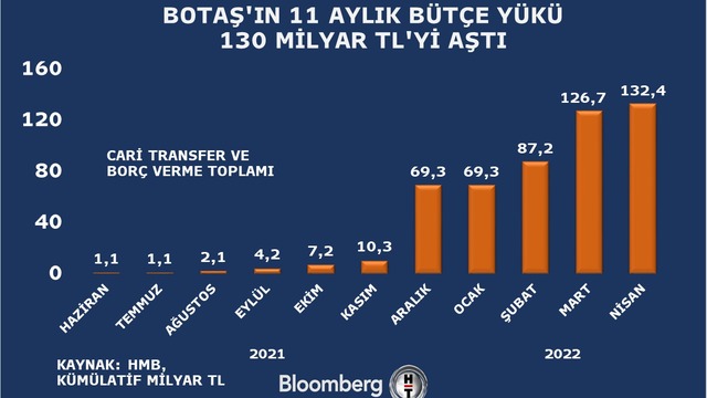 11 aylık kümülatif rakama bakıldığında ise BOTAŞ'ın bütçe yükü 130 milyar TL'yi aştı.