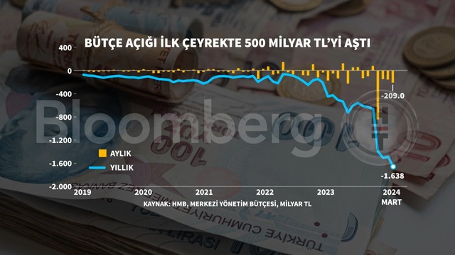 Ocak-Mart döneminde bütçe açığı 513,5 milyar TL seviyesine yükseldi.