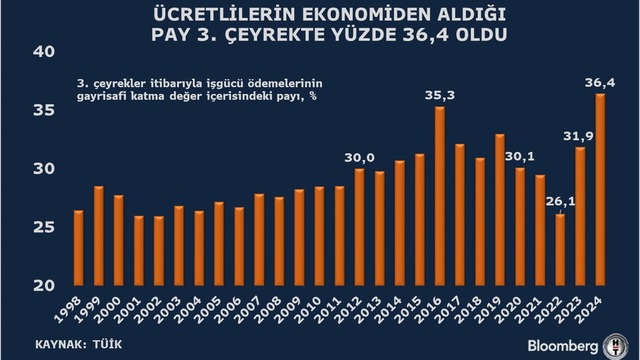 İşgücü ödemeleri 2024 yılı üçüncü çeyreğinde yüzde 76,3 arttı