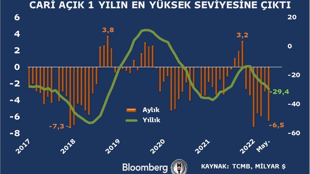 Türkiye Cumhuriyet Merkez Bankası tarafından açıklanan ödemeler dengesi verilerine göre, cari işlemler açığı, mayısta geçen yılın aynı dönemine kıyasla 3 milyar 151 milyon dolar artarak 6 milyar 468 milyon dolar düzeyinde gerçekleşti. Bunun sonucunda 12 aylık cari işlemler açığı 29 milyar 444 milyon dolara yükseldi.