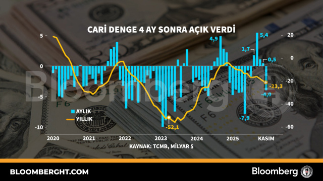 Bloomberg HT Grafik Cari denge 4 ay sonra açık verdi Cari denge 4 ay sonra açık verdi Giriş: 13 Ocak 2026, Salı 19:07 Güncelleme: 13 Ocak 2026, Salı 19:07