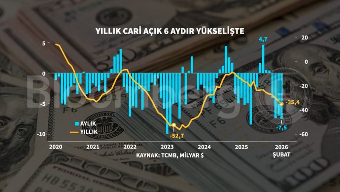 Şubat ayında cari işlemler hesabı 7 milyar 501 milyon dolar açık verdi. Veri 10 ayın zirvesi olarak kaydedildi.