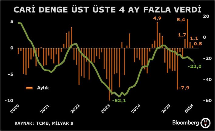 Cari işlemler hesabı ekim ayında 457 milyon dolar ile Bloomberg anketindeki 200 milyon dolarlık beklentinin üzerinde fazla verdi.