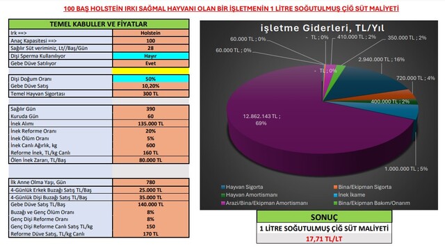 Sektörü dengede tutacak ve hem et hem de çiğ süt üretim arzının devamlılığını sağlayacak olan 1 litre soğutulmuş çiğ süt tavsiye fiyatını her ay hesaplanan maliyet üzerine konacak ortalama %20 kâr ile 21,25 TL/litre olarak açıklayan TÜSEDAD, mliyet hesaplamalarının detaylarını da paylaştı.