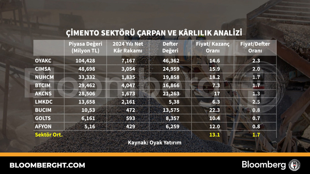 Bloomberg HT Grafik Çimento sektörü çarpan ve kârlılık analizi Çimento sektörü çarpan ve kârlılık analizi Giriş: 11 Haziran 2025, Çarşamba 15:29 Güncelleme: 11 Haziran 2025, Çarşamba 15:29