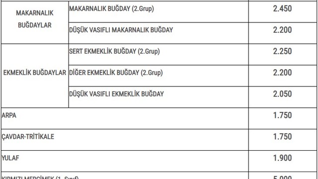 Öte yandan makarnalık buğdayın ton başına alım fiyatını ise 2.450 TL olarak belirlendiği öğrenildi.