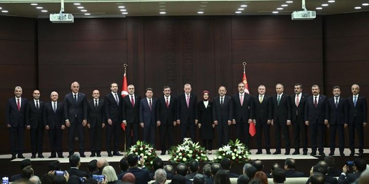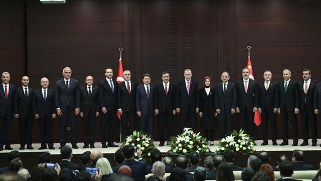 Erdoğan'ın açıkladığı kabinede; Cumhurbaşkanı Yardımcısı Cevdet yılmaz, Adalet Bakanlığı'na Yılmaz Tunç, Aile ve Sosyal Hizmetler Bakanlığı'na Mahinur Özdemir Göktaş getirildi.