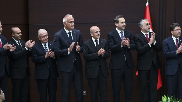 "Cumhurbaşkanı Yardımcısı Cevdet Yılmaz, Adalet Bakanı Yılmaz Tunç, Aile ve Sosyal Hizmetler Bakanı Mahinur Özdemir Göktaş, Çalışma ve Sosyal Güvenlik Bakanı Vedat Işıkhan, Çevre, Şehircilik ve İklim Değişikliği Bakanı Mehmet Özhaseki, Dışişleri Bakanı Hakan Fidan, Enerji ve Tabii Kaynaklar Bakanı Alparslan Bayraktar, Gençlik ve Spor Bakanı Osman Aşkın Bak, Hazine ve Maliye Bakanı Mehmet Şimşek, İçişleri Bakanı Ali Yerlikaya, Kültür ve Turizm Bakanı Mehmet Nuri Ersoy, Milli Eğitim Bakanı Yusuf Tekin, Milli Savunma Bakanı Yaşar Güler, Sağlık Bakanı Fahrettin Koca, Sanayi ve Teknoloji Bakanı Mehmet Fatih Kacır, Tarım ve Orman Bakanı İbrahim Yumaklı, Ticaret Bakanı Ömer Bolat, Ulaştırma ve Altyapı Bakanı Abdulkadir Uraloğlu."