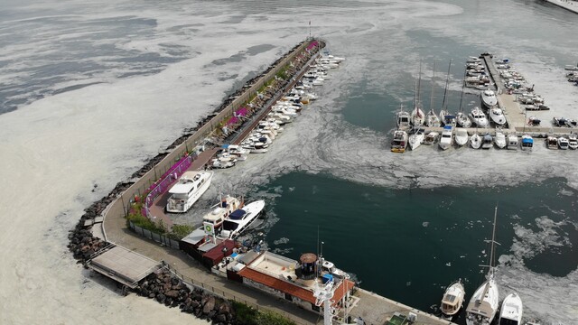 Kadıköy, Kurbağalıdere'yi deniz salyası kapladı. Beton dökülmüş gibi tabaka oluşturan salya teknelerin bulunduğu kısımda yoğunlaştı. Kötü kokular yayan deniz salyalarının oluşturduğu kirlilik havadan da görüntülendi. Kurbağalıdere'yi geçtiğimiz günlerde de deniz salyası sarmıştı.