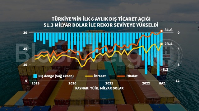 Ocak-Haziran döneminde dış ticaret açığı yüzde 142,7 artarak 21 milyar 181 milyon dolardan, 51 milyar 400 milyon dolara yükseldi. İhracatın ithalatı karşılama oranı 2021 Ocak-Haziran döneminde yüzde 83,2 iken, 2022 yılının aynı döneminde yüzde 71’e geriledi.