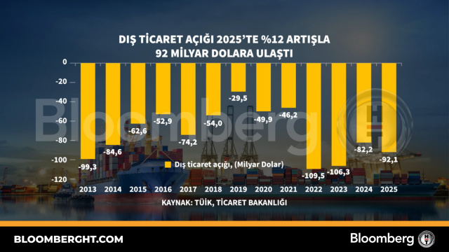 Bloomberg HTGrafikDış ticaret açığı 2025'te yüzde 12 artışla 92 milyar dolara ulaştı