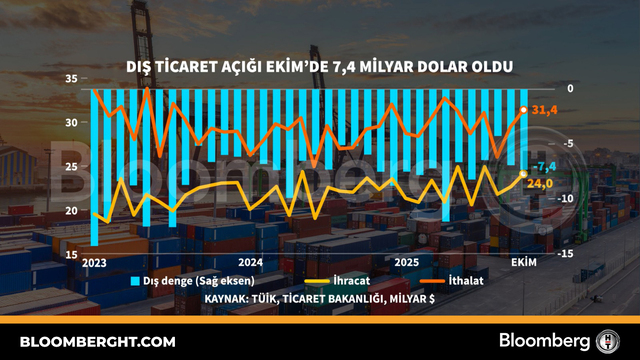 Bloomberg HT Grafik Dış ticaret açığı Ekim'de 7,4 milyar dolar oldu Dış ticaret açığı Ekim'de 7,4 milyar dolar oldu Giriş: 04 Kasım 2025, Salı 16:30 Güncelleme: 04 Kasım 2025, Salı 16:30 REKLAM advertisement3ndparty