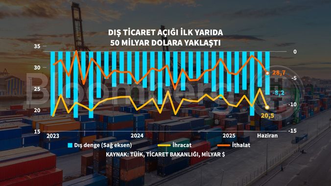 Dış ticaret açığı yılın ilk yarısında 50 milyar dolara yaklaştı