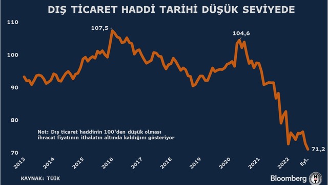 İhracat birim değer endeksinin ithalat birim değer endeksine bölünmesiyle hesaplanan ve 2021 yılı Eylül ayında 88,4 olarak elde edilmiş olan dış ticaret haddi, 17,2 puan azalarak, 2022 yılı Eylül ayında 71,2 oldu. Böylelikle dış ticaret haddinde rekor düşük seviye kaydedildi.