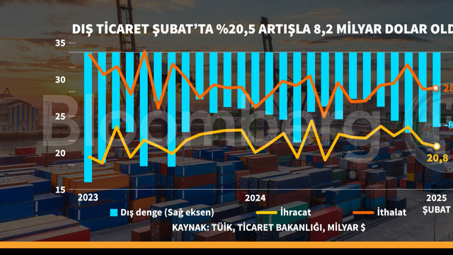 Bloomberg HTGrafikDış ti̇caret Şubat'ta yüzde 20,5 artışla 8,2 mi̇lyar dolar oldu