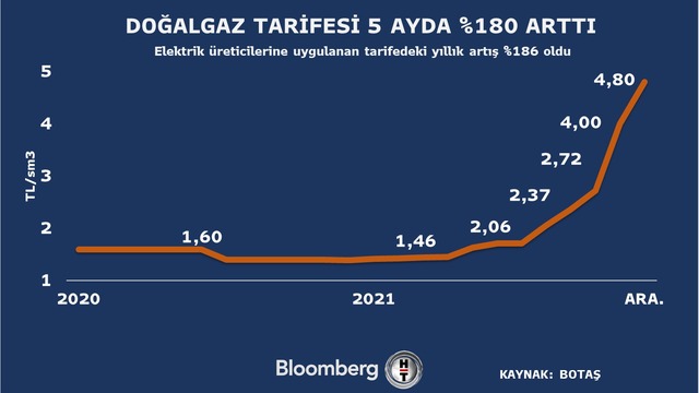 Diğer taraftan, büyük sanayi ve ticari kuruluş abone grupları ve elektrik üretimi amaçlı kullanılan doğal gaz tarifesine yüzde 20 oranında zam uygulandığı açıklandı.