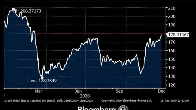 Dolar bazında endeks 178 dolar seviyesine ulaştı. Böylece Temmuz ayında görülen 174 dolar seviyesinin de üzerine çıkan endekste mart ayının başından bu yana en yüksek seviyeye ulaşıldı.