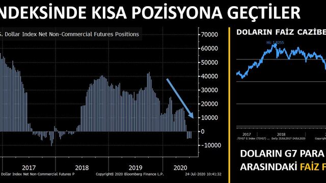 Doların önemli paralar karşısındaki değerini ölçen Bloomberg Dolar Spot Endeksi (BBDXY) Temmuz'da daha şimdiden yüzde 2.3 düşmüş durumda. Ayrıca ABD beş yıl vadeli Hazine tahvillerinin faizi Cuma günü yüzde 0.2548 ile rekor düşük seviyeye geriledi.
