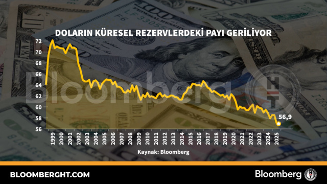 Bloomberg HT Grafik Doların küresel rezervlerdeki payı geriliyor Doların küresel rezervlerdeki payı geriliyor 29 Ocak 2026, 17:40 Güncelleme : 29 Ocak 2026, 17:40
