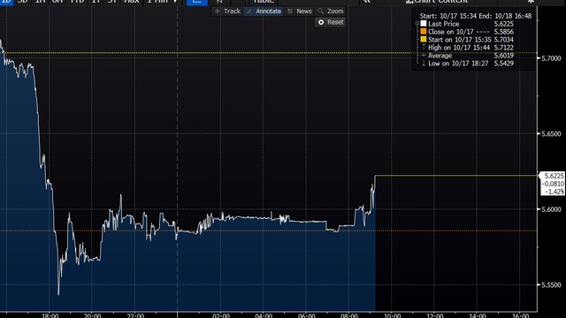 Bugüne artışla başlayıp sonra düşüşe geçen kur en düşük 5.51, en yüksek 5.66 seviyesini gördü. Euro/TL 6.48 seviyesinde.