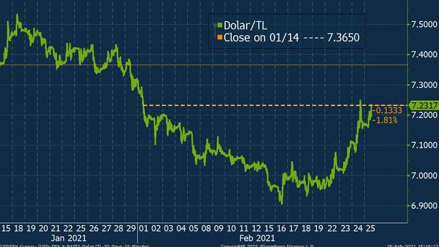 Bu haftaya gelene kadar 5 haftalık bir yükseliş ivmesi yakalayan Türk Lirası, bu hafta yönünü aşağı çevirmişti. Haftaya 7,01 seviyesinde başlayan dolar/TL kuru Çarşamba günü de 7,24'ün üzerini test etmişti.