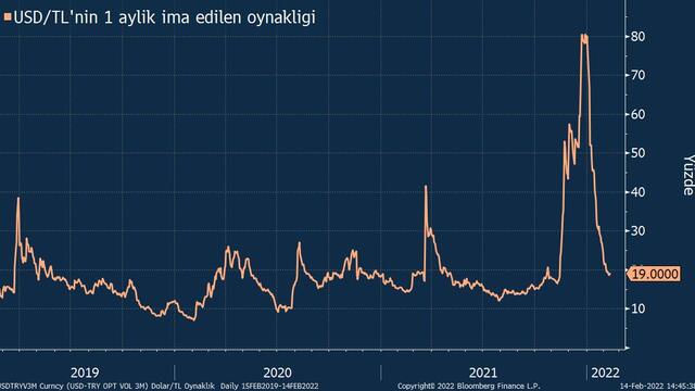 Dolar/TL’nin 1 aylık ima edilen oynaklığı da bu süreçte yüzde 16 seviyelerinden yüzde 80’e kadar tırmanmıştı.