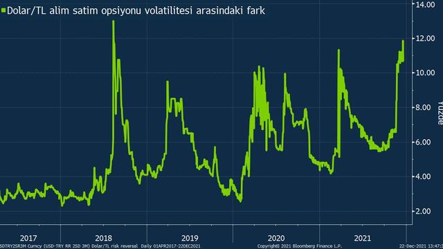 Türk lirasının 1 aylık ima edilen oynaklığı salı günü 62,62’ye ulaşarak tüm zamanların en yüksek seviyesini gördü. Gösterge en son 13 Ağustos 2018’de 61,47 seviyesine kadar tırmanmıştı.