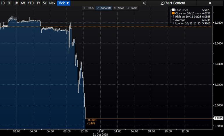 Dün 6.0168'e kadar gerileyen, günü 6.07'den tamamlayan kur güne düşüşle başladı. Bu sabah saatlerinde en yüksek 6.08'i gören dolar/TL cari açık verisinden sonra 6 seviyesinin altına indi ve 5.9521'i gördü. Kur gün boyu 5.98-6 seviyelerinde dalgalandı.