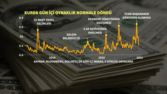 Dolar/TL kurunda oynaklık seviyeleri de TCMB'deki başkanlık değişiminin ardından hızla yükseldikten sonra normalleşme eğilimi gösterdi.