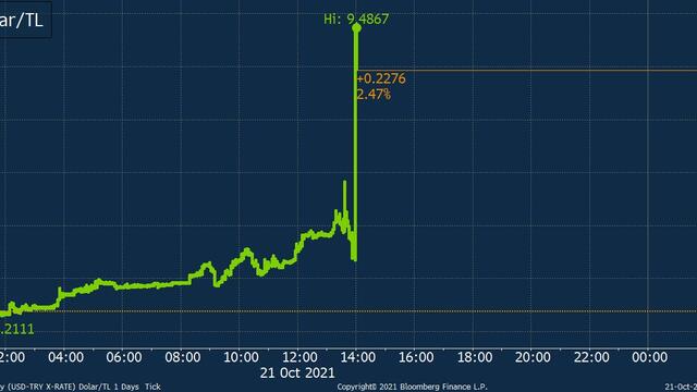 Dolar/TL, Türkiye Cumhuriyet Merkez Bankası'nın politika faizini 200 baz puan indirmesi sonrasında 9,48'e ulaşarak tüm zamanların en yüksek seviyesini gördü.