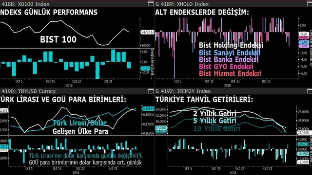 Borsa günü %1.27 düşüşle tamamladı, banka endeksi yaklaşık % 2 düştü. TL gelişen ülke para birimlerinden negatif ayrıştı. 10 yıllık tahvil faizi 52 baz puan yükselerek %16.85'e çıktı.