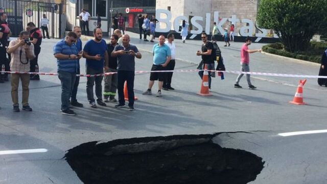Dolmabahçe'de yol çöktü, stadın önündeki yol ulaşıma kapandı